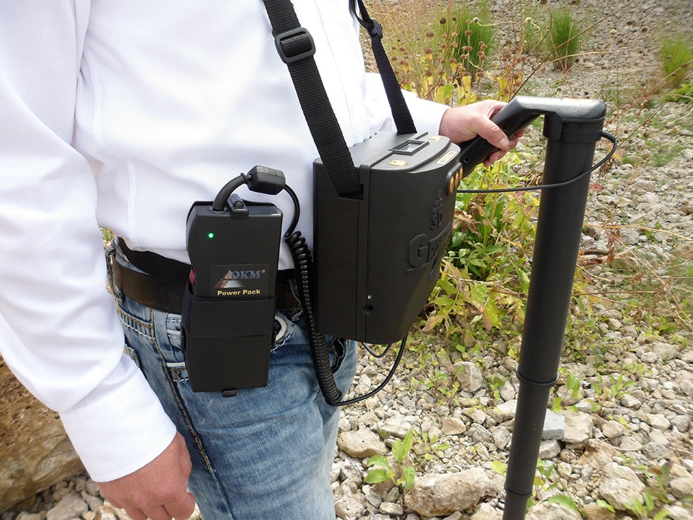 The Control Unit of the 3D Ground Navigator is operated with an internal battery that lasts for about 24 hours. If you need to extend the operating time, you can also use the optional Power Pack which lasts for about 48 hours.