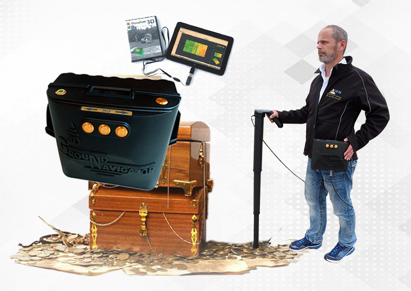 3D Ground Navigator is an efficient 3D ground scanner and metal detector that has been manufactured by OKM Germany. The detector has been developed according to very specific customer demands. It is a high-performing geophysical detection instrument to locate buried artifacts, lost treasures, subsurface anomalies, underground utilities as well as other hidden structures. It provides non-destructive examination methods to render graphical images of subterranean targets prior to excavation.