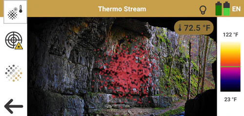 - Thermo Stream – OKM's real-time thermography mode to detect hidden caves and tombs behind walls and in the underground.