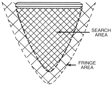 in which faint target signals from around the outer edges of a normal detection pattern can be heard.