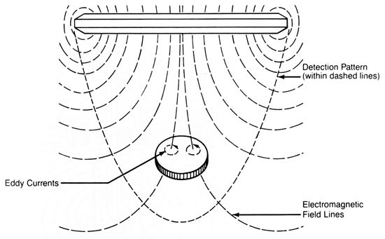 When any metal comes within the detection pattern of a searchcoil, eddy currents flow over its