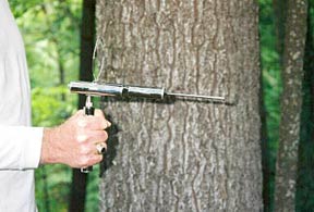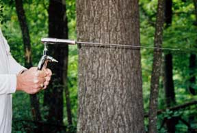 As with the PMR-II, the unique two-hand bearing handle allows perfect balancing of the instrument for steady operation. To use the PMR-III just load the sample compartment with a sample of the material for which you wish to search, extend the antenna and install the handle which you wish to use. When used with either of the two bearing handles, the instrument can pivot freely on the precision ball bearings and swing so as to point in the direction of your target. When directly over the target, it can operate in a circular motion. The PMR-III operates with the 24" fibre handles and the spring handle in the same way as the Precision-Master Rod and the PMR-II except with greater sensitivity and accuracy.