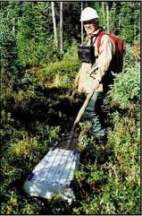 The Beep Antenna is a powerful miniaturized electromagnetic survey instrument that efficiently and inexpensively detects conductive and magnetic outcrops or boulders hidden under up to 10 feet (3 meters) of overburden. With the Beep Antenna, you can sample as many conductive outcrops and floats in one season as a mining company drills in ten years of standard operation. The Beep Antenna sends different sound signals for magnetite and conductive materials, and their relative values are displayed to help pinpoint high values. Simultaneous measurements of the conductivity and susceptibility (magnetite content) are displayed. It detects sulfide floats, veinlets and conductors such as pyrite, pyrrhotite, chalcopyrite (Cu), graphite, pentlandite (Ni), galena (Ph), etc. and even silver (Ag) and gold (Au) nuggets.