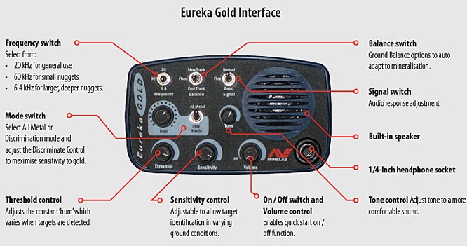 The Eureka Gold gives you 6.4kHz for maximum depth, 20kHz for general detecting and the super sensitive 60kHz to find the smallest gold nuggets that others are missing. Featuring Minelab's ACCU-TRAK Ground Balance with switchable two speed recovery, it's really easy to use and very versatile.
