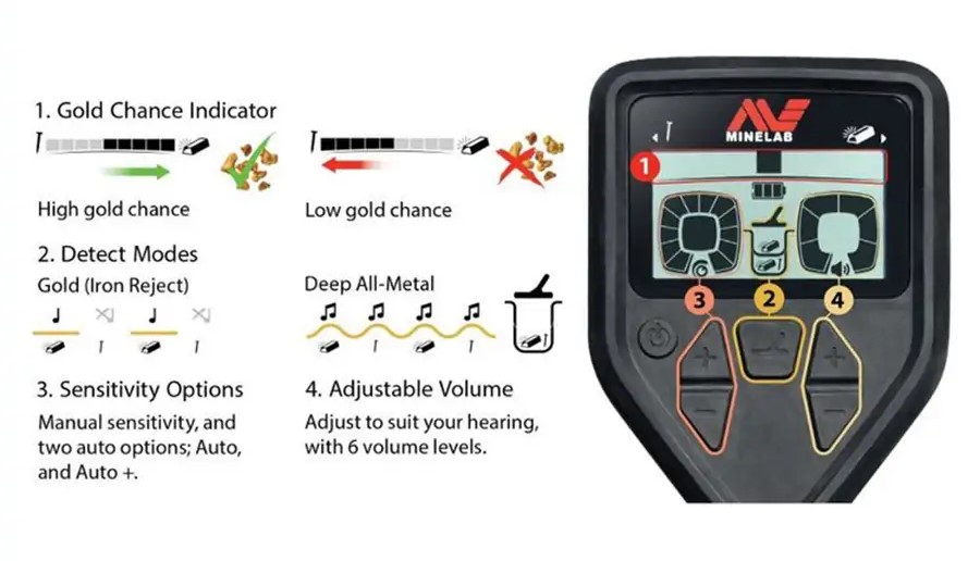 - Detect Modes: Gold (Iron Reject) and Deep All-Metal