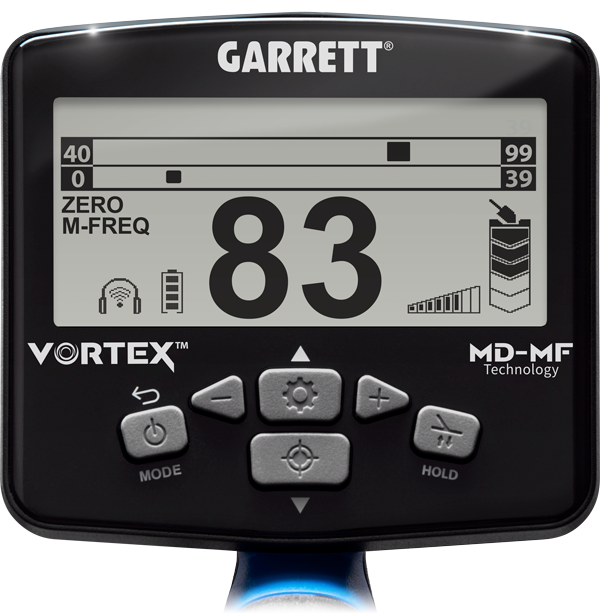 Choose from two powerful single frequencies (5 kHz or 13 kHz) or search with one of two Vortex simultaneous Multi-Frequency options (the traditional Multi or Multi-Frequency Salt for saltwater beach use).